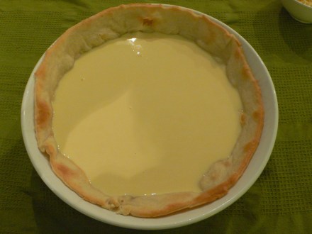 Y luego pues es tan fácil como desenrollar la masa en una fuente y ahora tenéis 2 opciones: ó cocer la masa primero durante unos 10 minutos o hacerla directamente sin precocer la masa. Si estáis muy cansados o no tenéis tiempo ni os molestéis en precocerla pero aseguraros de que la base se hace durante un poco más de tiempo sino quedará un poco blandengue, pero he de decir a que a mucha gente le gusta así. En esta ocasión tenía tiempo así que la cocí un poquito.