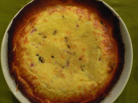 Tarrrraaaaaaaaaa: quiche de champiñones, jamón y queso, una deliciosa alternativa a los macarrones con tomate!