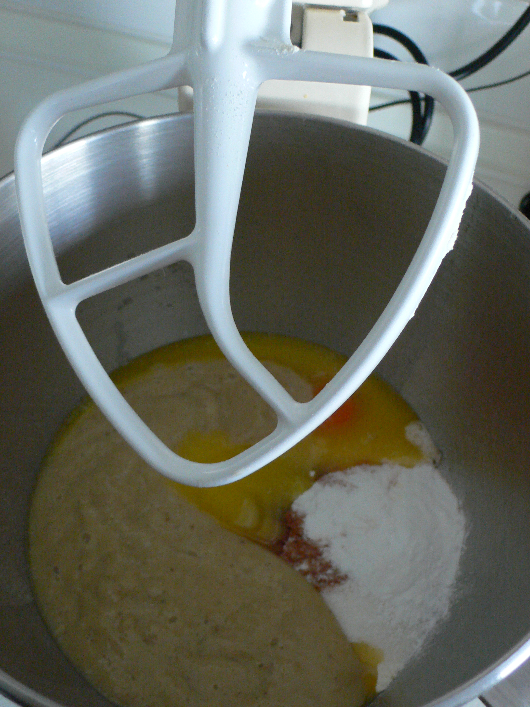Y luego es tan sencillo como mezclar todos los ingredientes sin que queden grumos, verter en un molde enmantequillado y al horno: