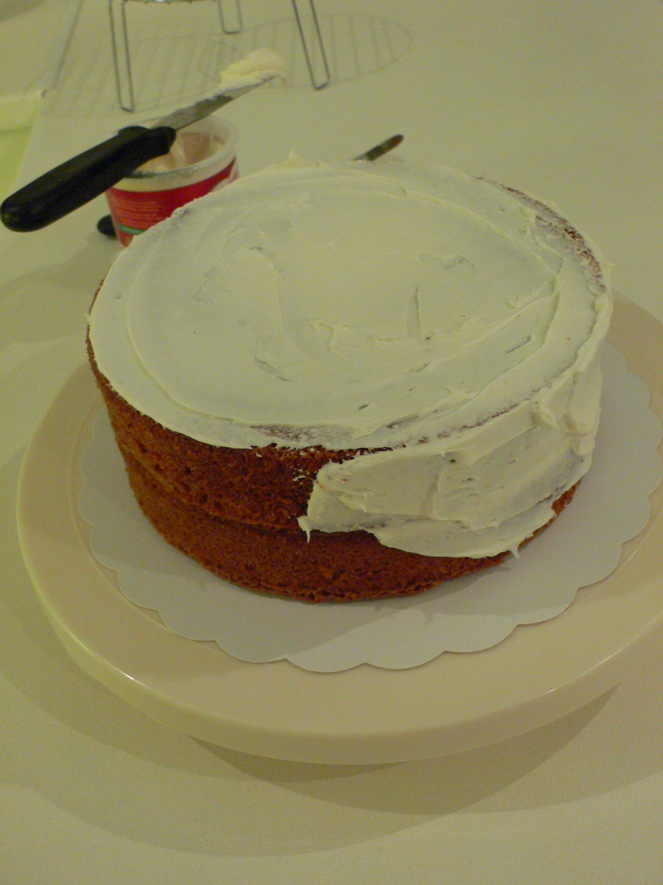 Una vez pegados, los cubrí con icing…he de confesar que hice trampas y lo compré hecho pero es que no tenía ni tiempo ni ganas ni energía para ponerme a batir mantequillas varias…el icing se pone para que la pasta de azúcar se pegue al bizcocho: