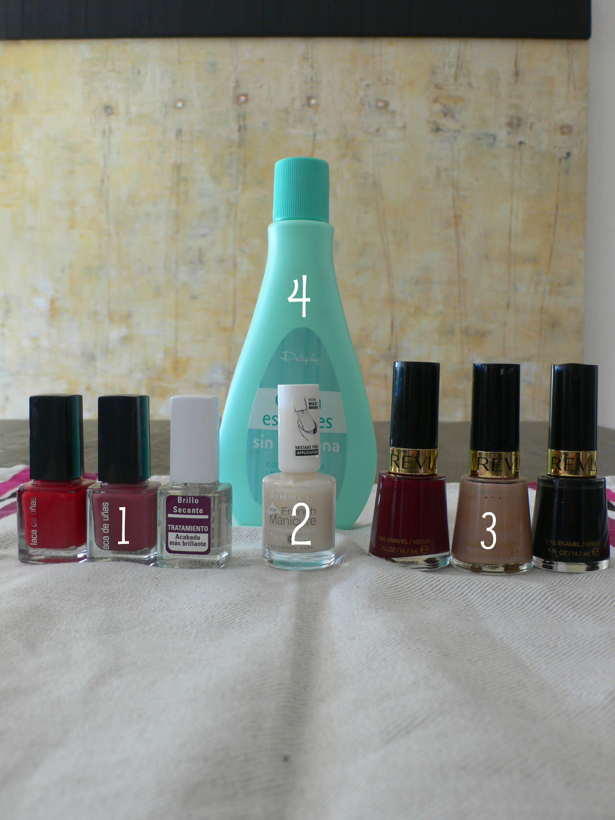 - Laca de uña de Mercadona: colores 59 (rojo), 13 (rosa) y brillo. Cuestan 2.50 Euros.