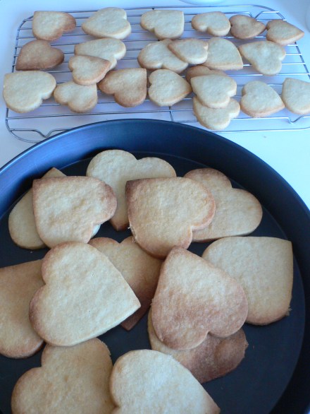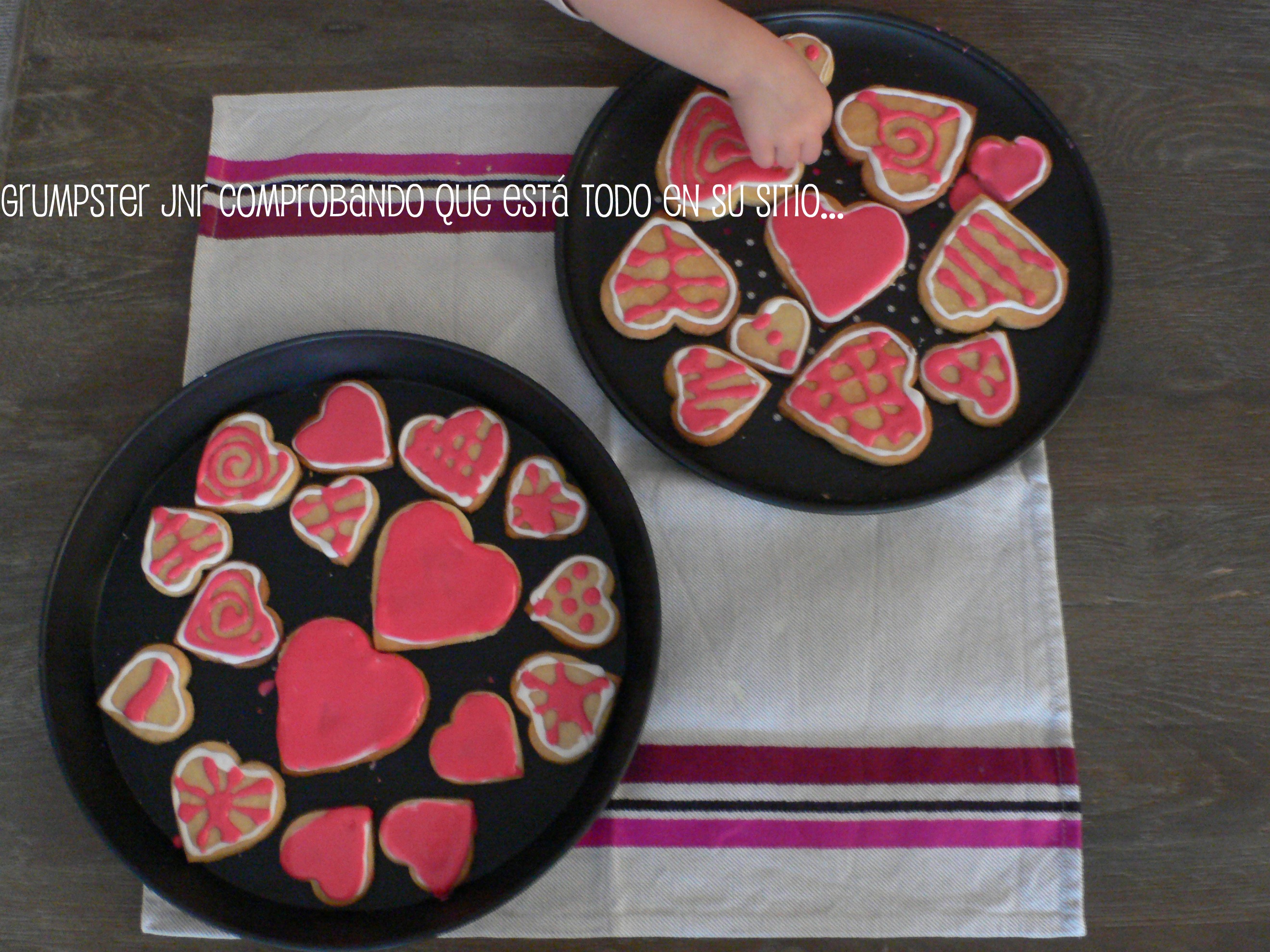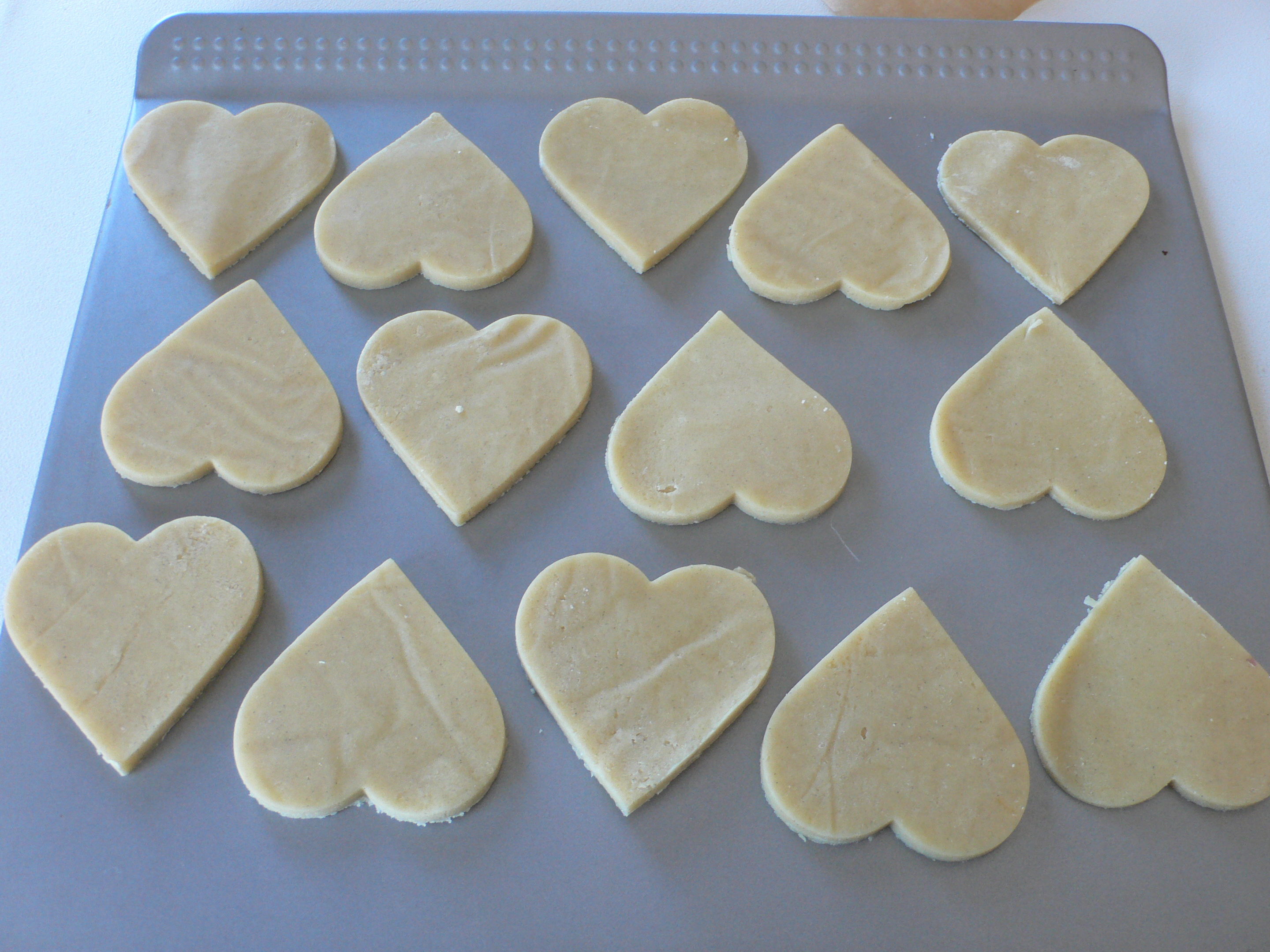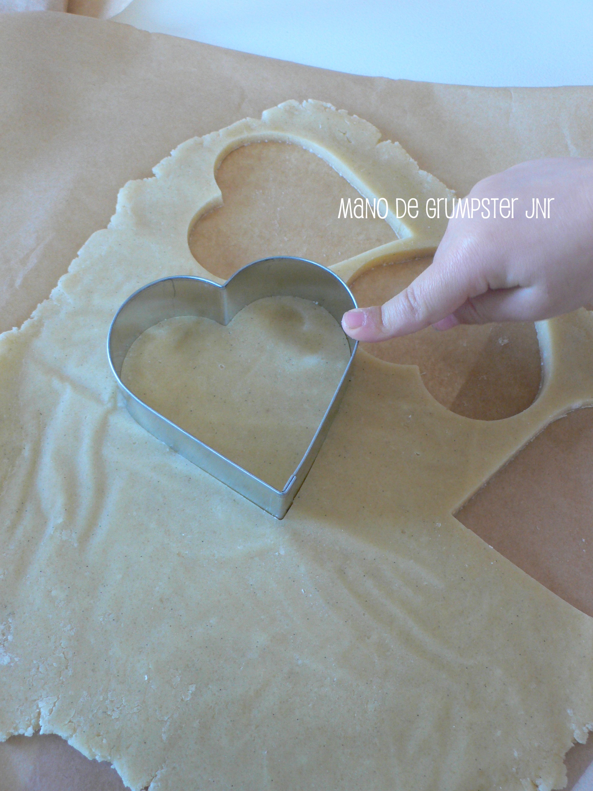 Y luego como la masa ya está estirada y durita, es tan fácil como usar el corta galletas de la forma y del tamaño que os apetezca…en este caso corazones debido a la temática del día: