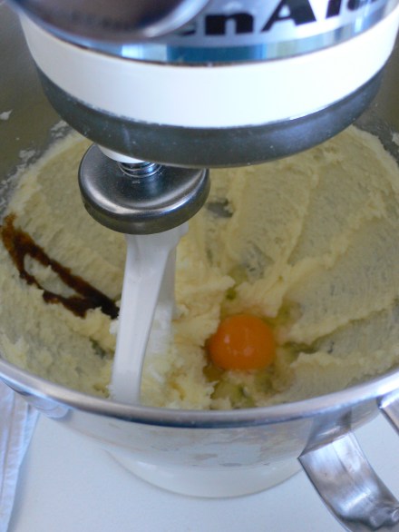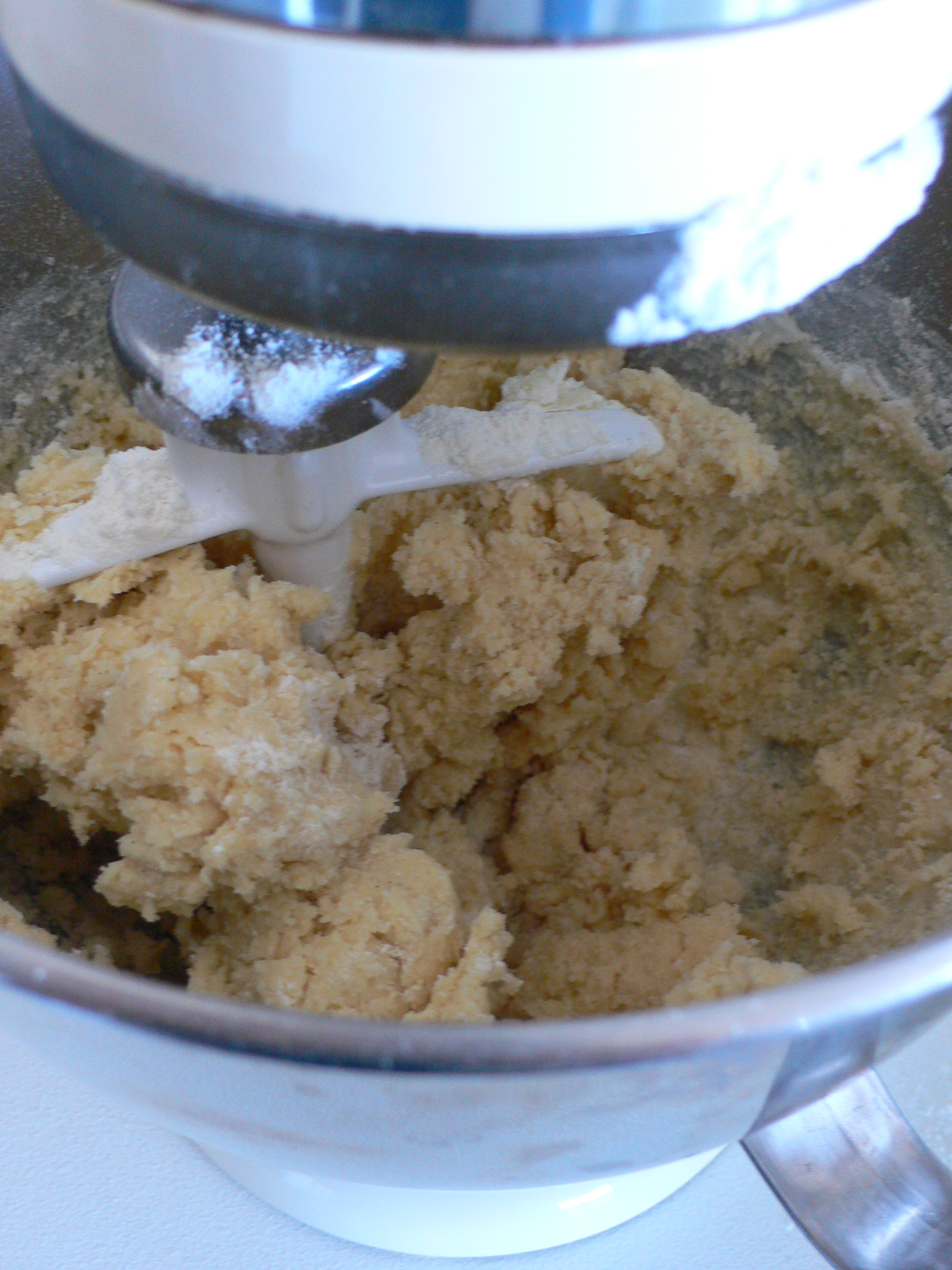 Lo primero, mezclar la harina y la sal y dejarlas en un bol aparte. Lo segundo, batir la mantequilla junto con el azúcar hasta que quede cremoso. Si no tenéis una máquina amasadora, lo podéis hacer con varillas amasadoras (cuestan unos 24 Euros). Podéis hacerlo a mano pero os váis acordar de mí y de mi madre si lo hacéis..