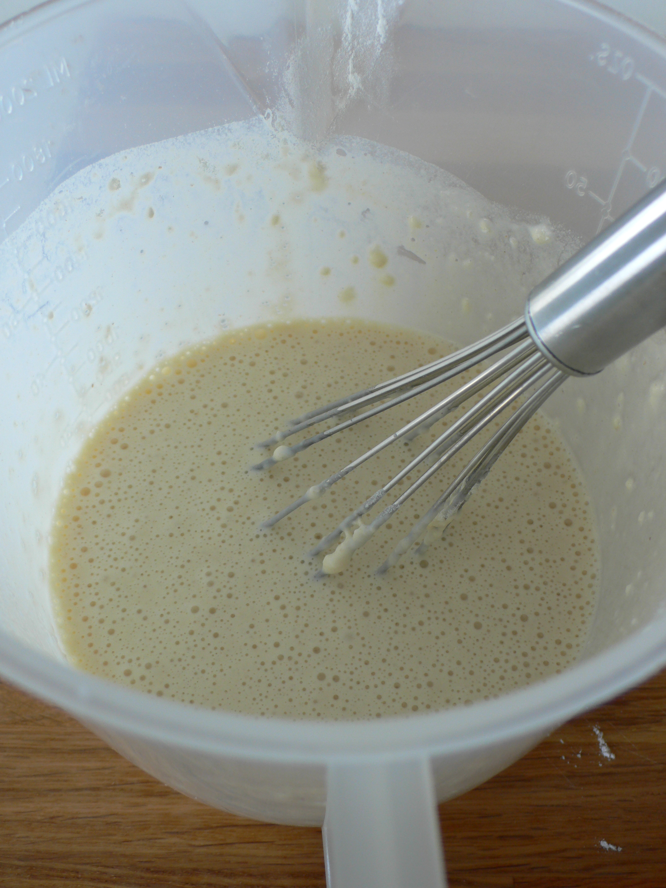 Sé que suena raro pero yo utilizo la misma cantidad de harina que de leche para que queden unos crepes no gorditos pero no super finitos tampoco. Si queréis los crepes más finitos le añadís más leche y listo. Pues es tan sencillo como mezclar los ingredientes hasta que os quede una masa así: