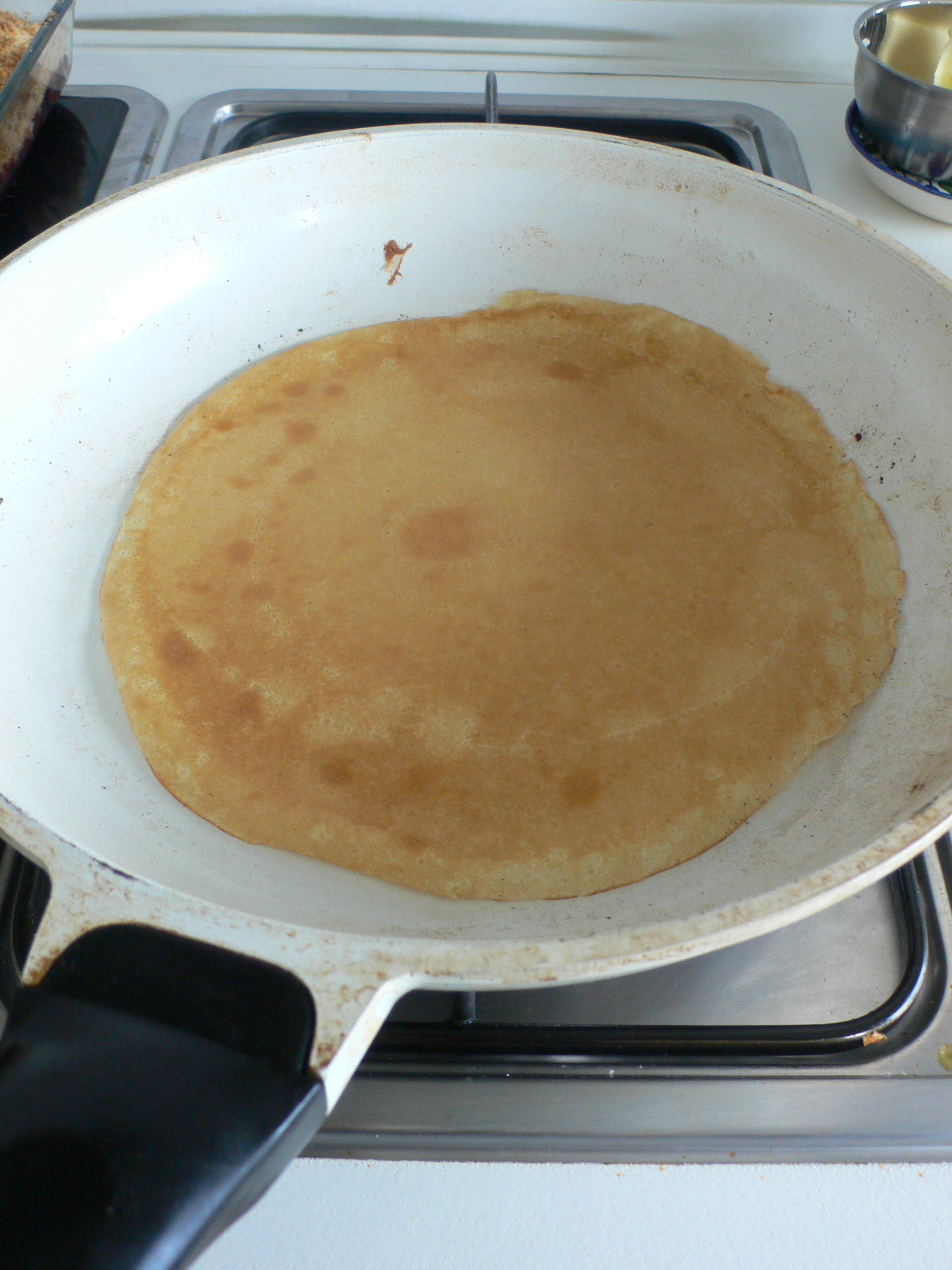 Y ahora hay que hacer los crepes en una sartén bien caliente con un poquito de mantequilla para el primer crepe y luego ya no hace falta. Haced tantos como os dé..a mí me ha dado para 8 crepes grandes: