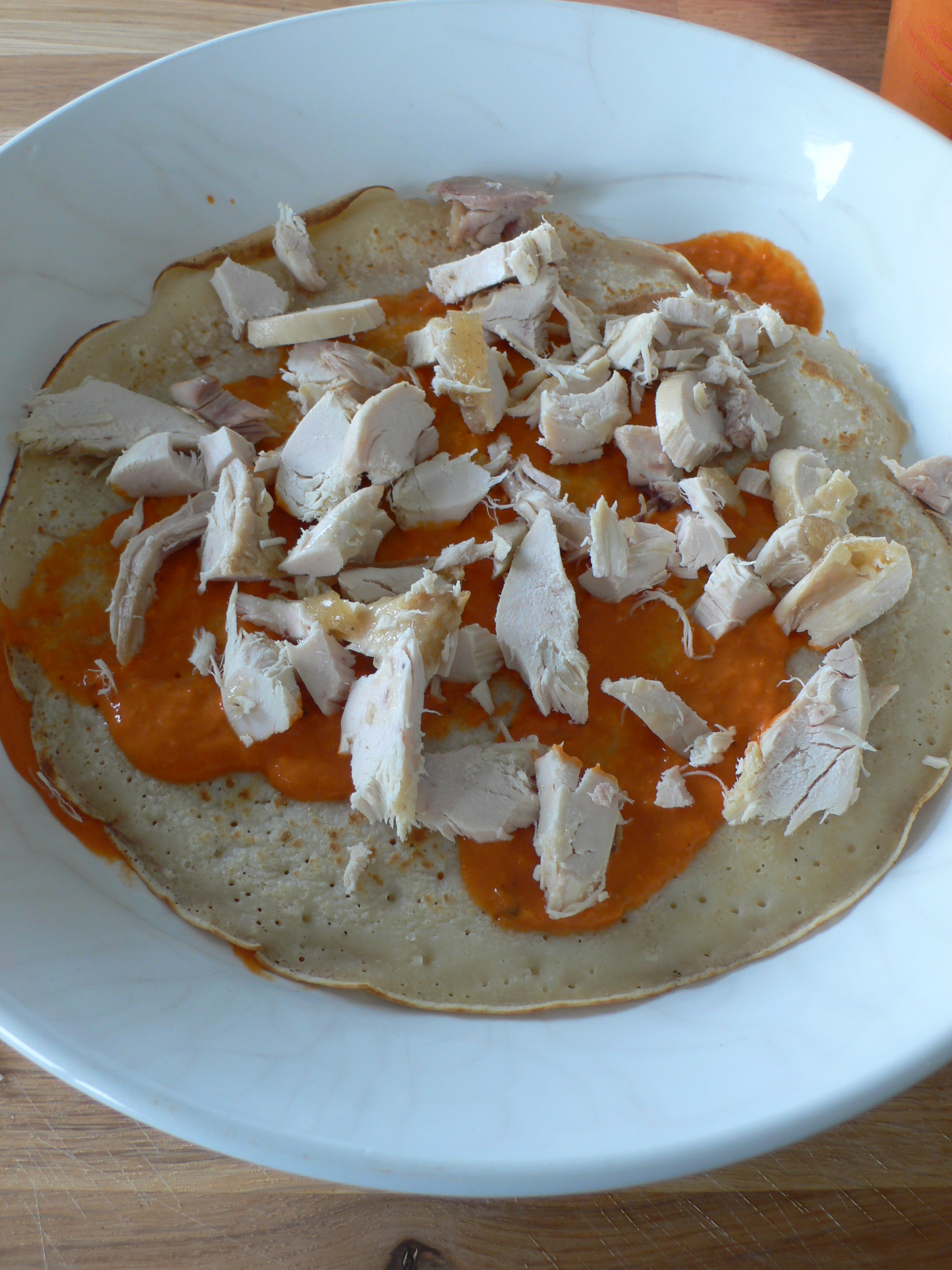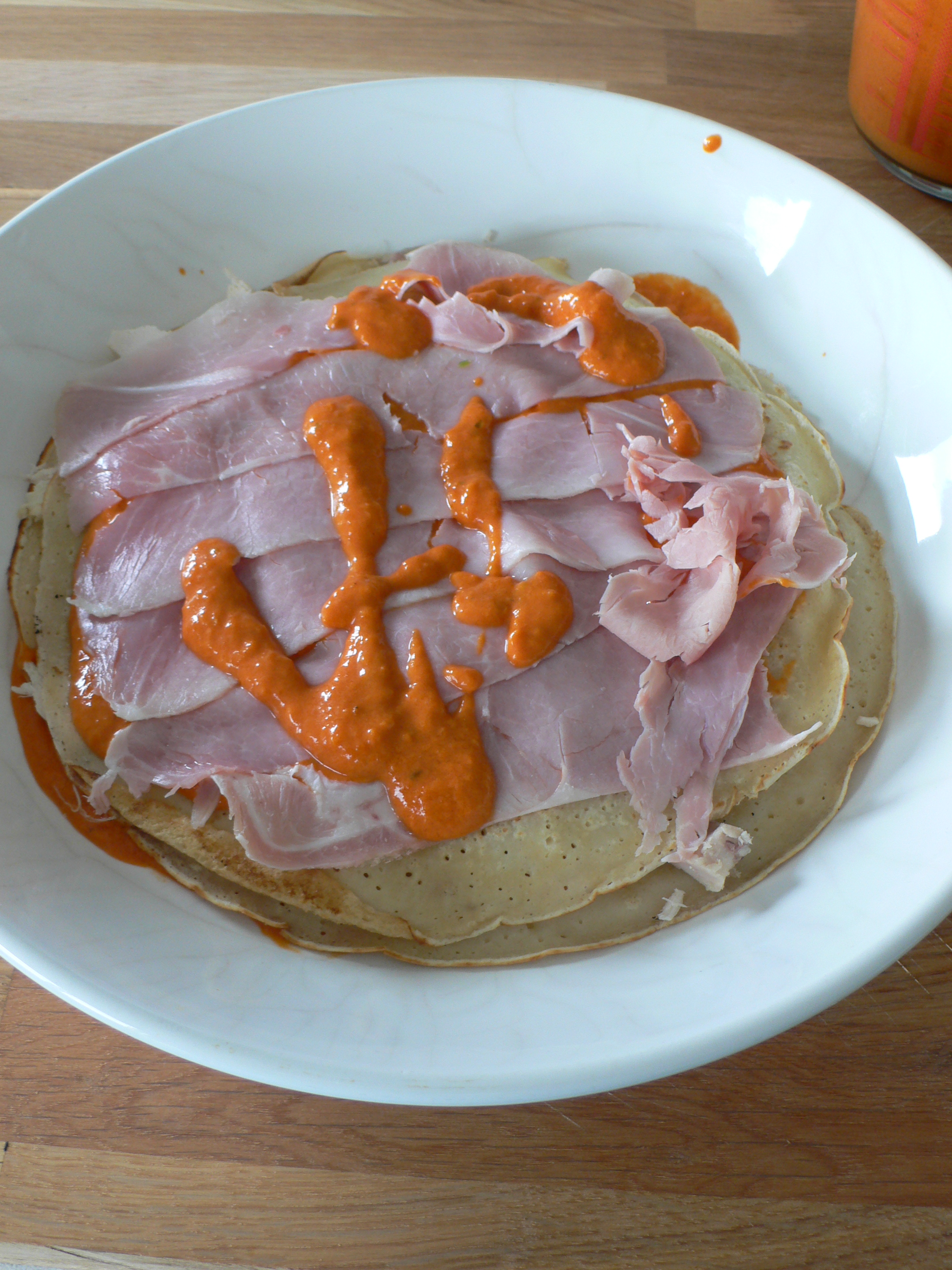Ha tenido un éxito considerable y he de decir que da mucho margen porque podéis optar por hacerlo con productos ya hechos o hacerlo todo vosotros. Como es finde y he tenido un poco más de tiempo, me lo he currado un poquito y he hecho la salsa y los crepes desde 0 pero se puede hacer perfectamente con crepes ya cocinados (los venden en Alcampo y aunque son un poco dulces los podéis usar para salado igualmente) y con una salsa de tomate de bote que os guste.