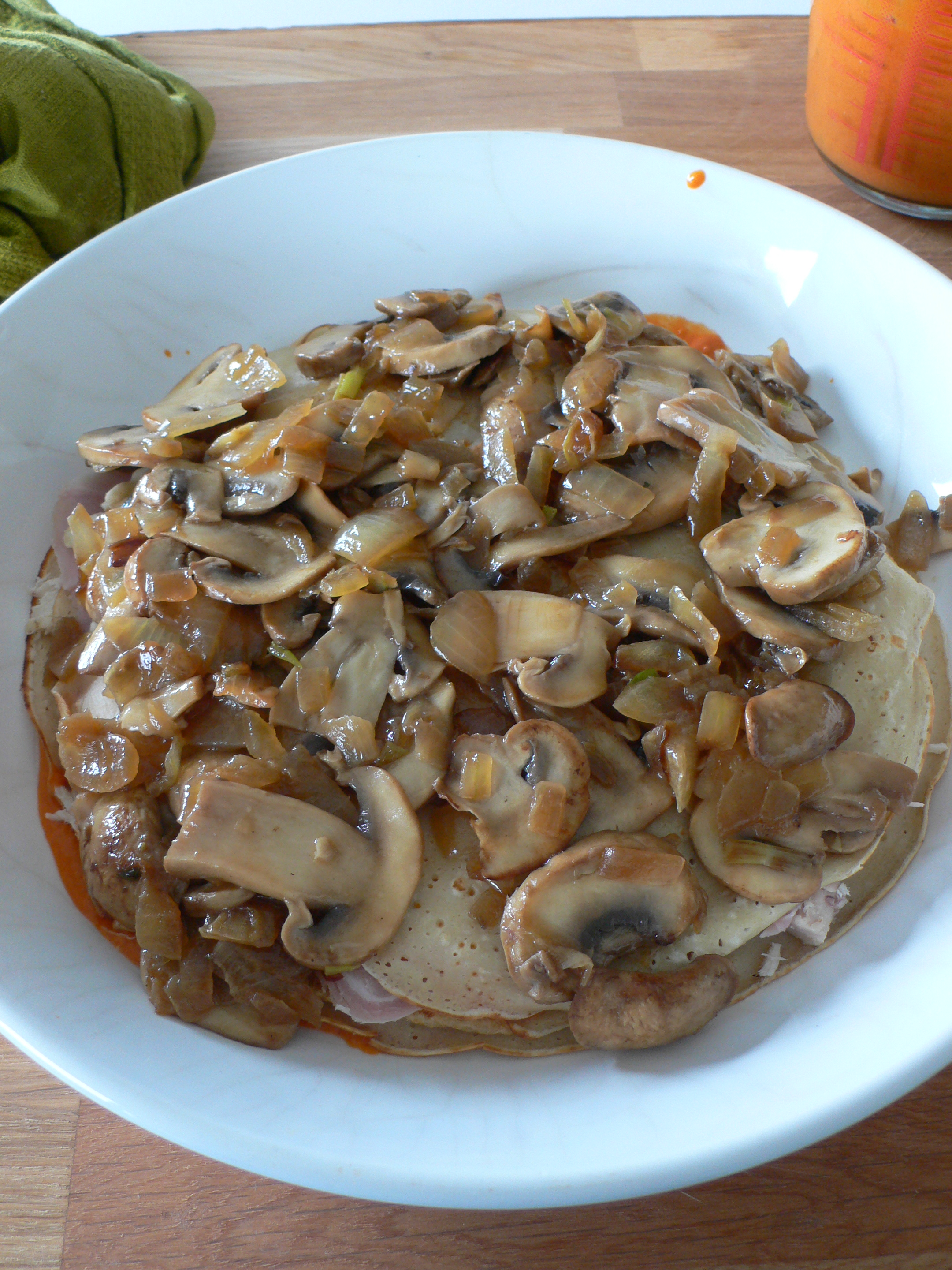 Como no quiero intimidar a los no cocinillas si os parece empiezo la receta por el medio, con los crepes y salsa de tomate ya hechos y luego más adelante a los que queráis hacer los crepes y la salsa (que es un chorrada) os explico como hacerlos.