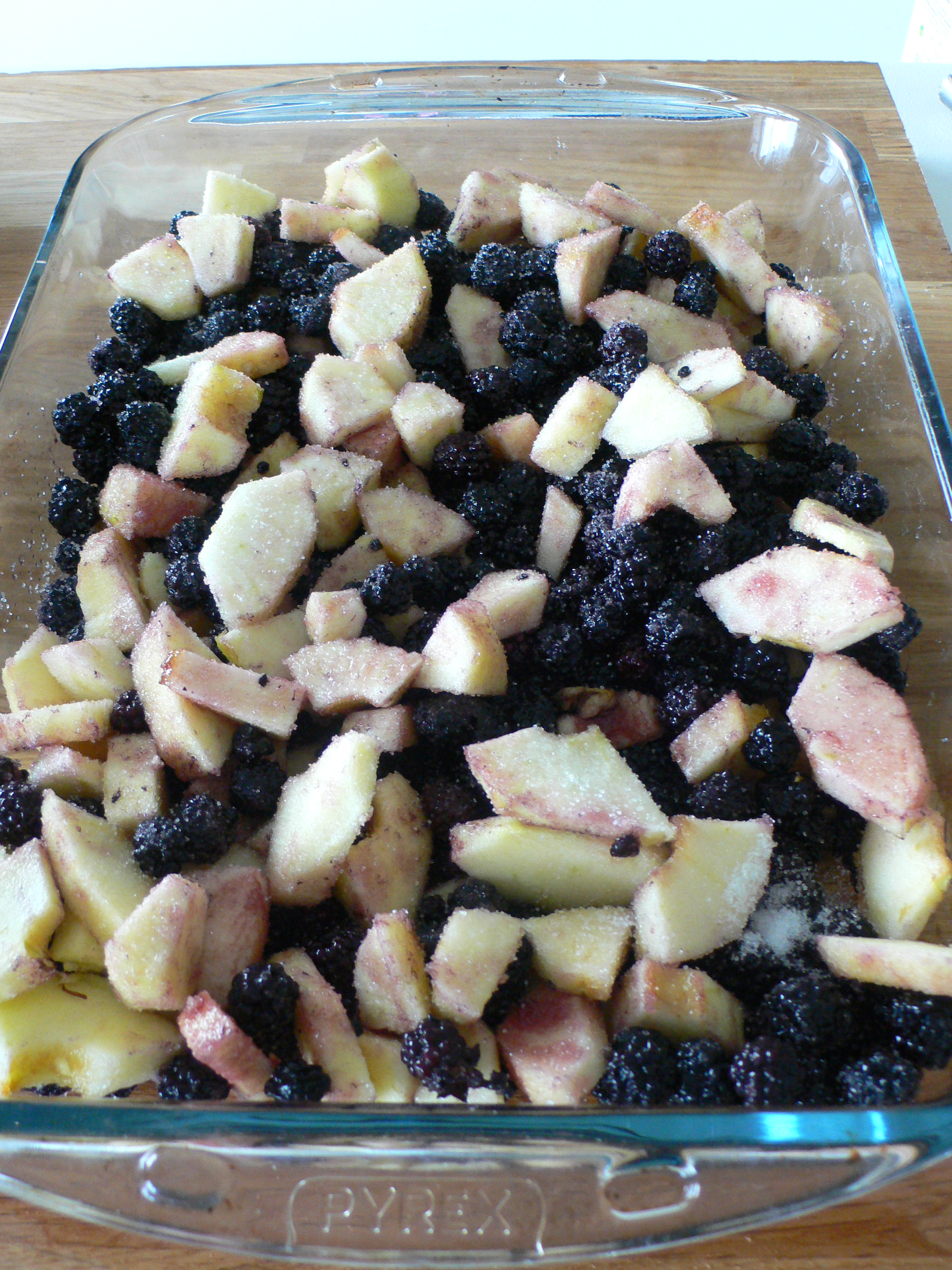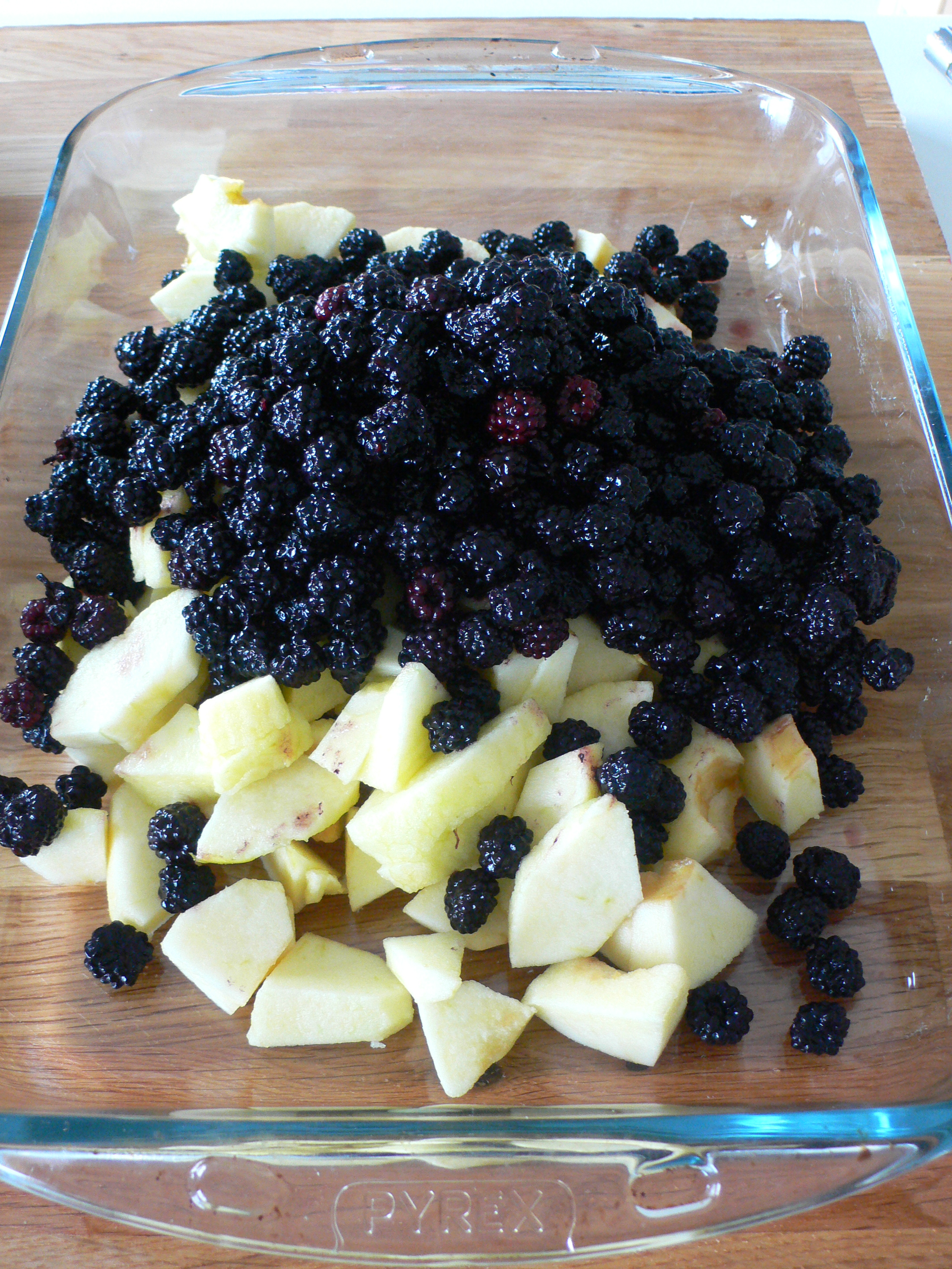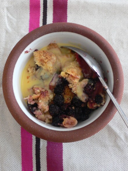 La semana pasada tuvimos la genial idea de descongelar el congelador y descubrí que me quedaban moras de un día que Mr. Grumpster se fue de aventura al campo así que decidí que no pasaba un día más sin hacer un crumble.