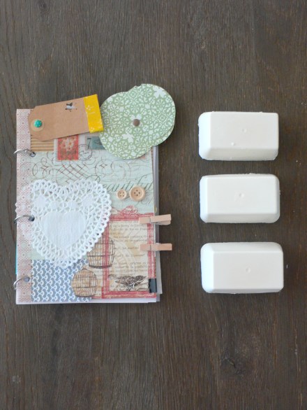 Aquí podéis ver mis 3 primeros jabones! Y junto con los jabones veis mi «creación» del taller de Chicas Night Out.
