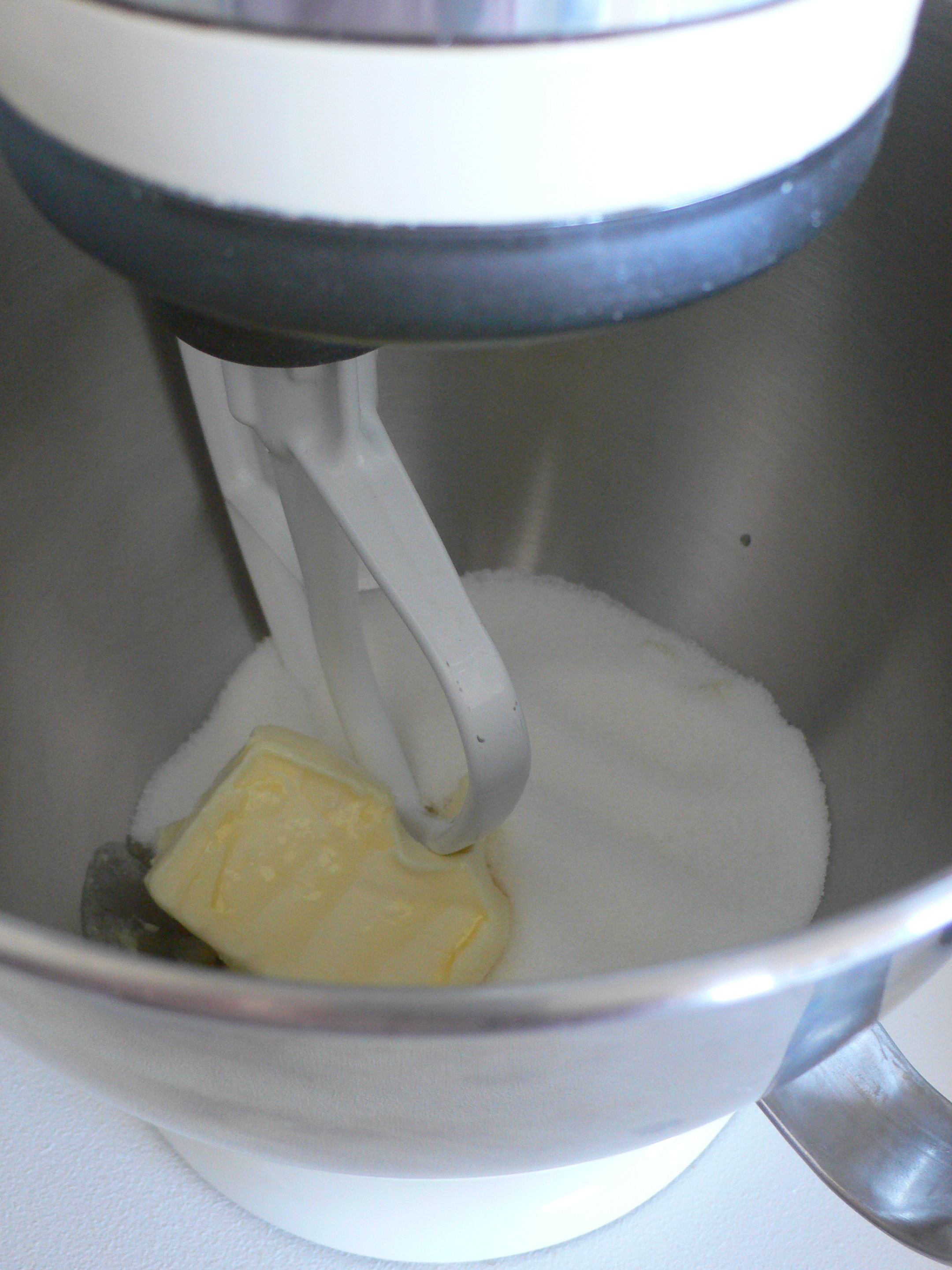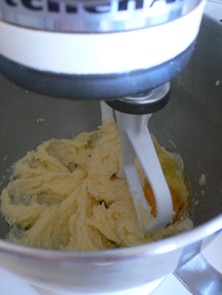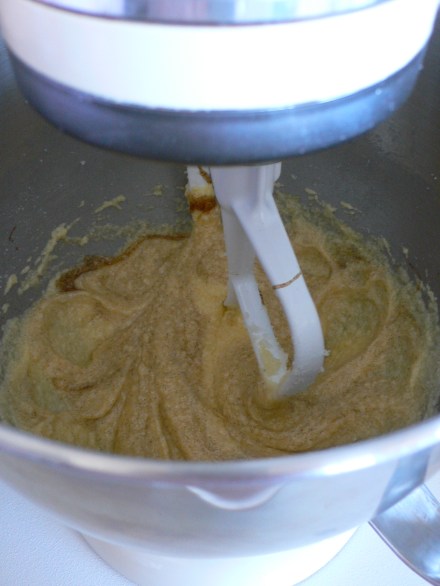 Y luego, empezamos mezclando bien la mantequilla con el azúcar. Si no tenéis amasadora, con que lo hagáis con una cuchara de madera de forma entusiasta y algo vigorosa hasta que quede todo bien mezclado vale: