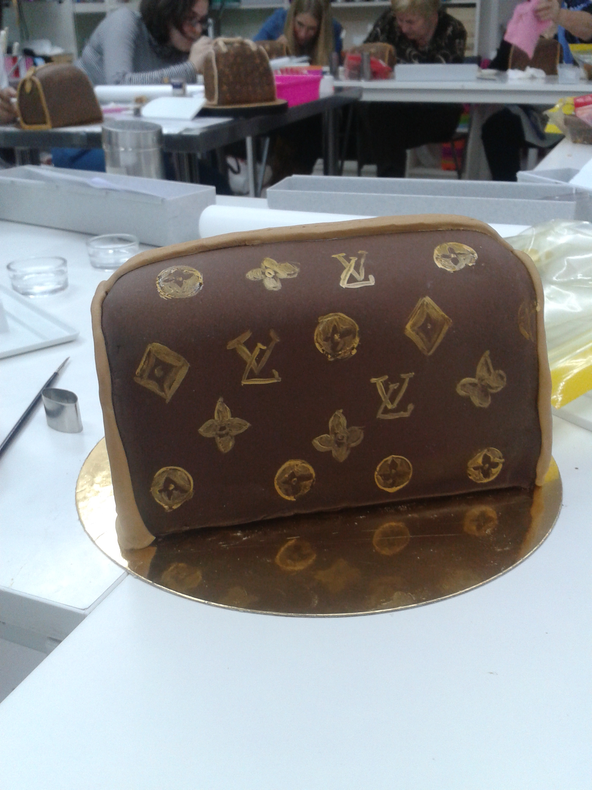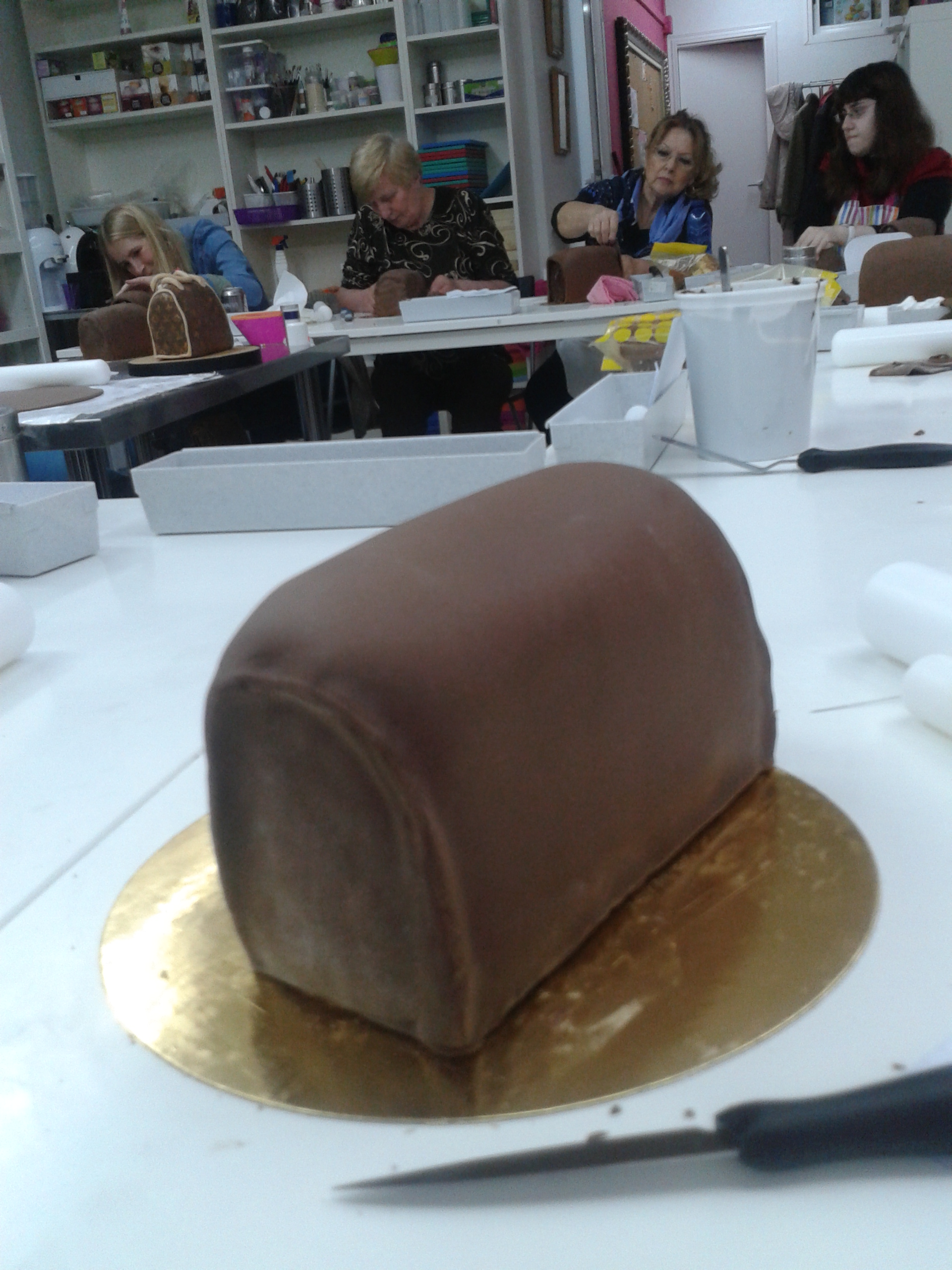 Primero os enseño las fotos del paso a paso del pastel con forma de bolso, entre otras cosas porque el curso de papel japonés que por cierto es el papel más bonito que habéis visto en vuestra vida, me concentré tanto haciendo las manualidades y hablando con mi compi de mesa Jo, que es un auténtico encanto, que se me pasó hacer muchas fotos.