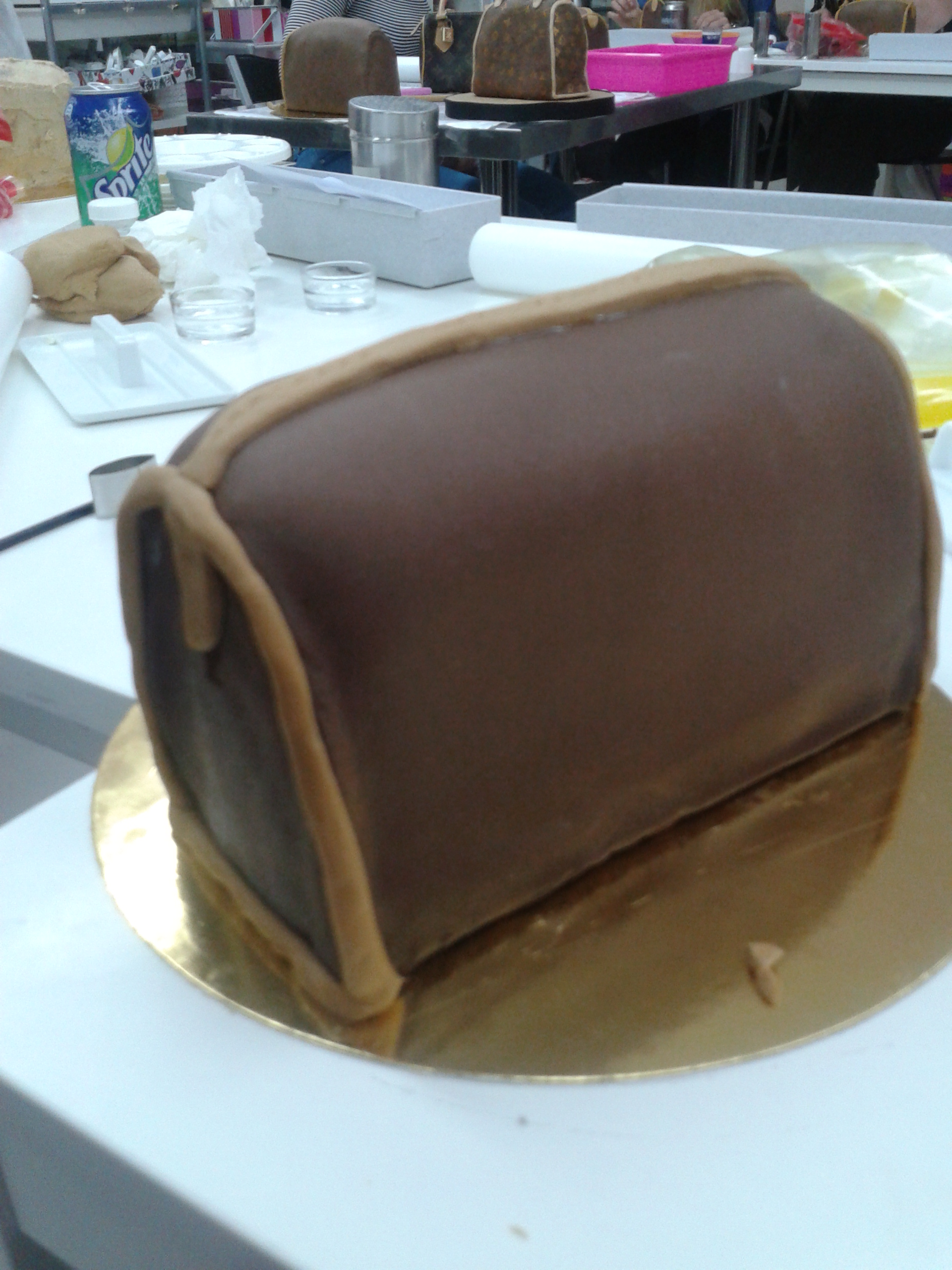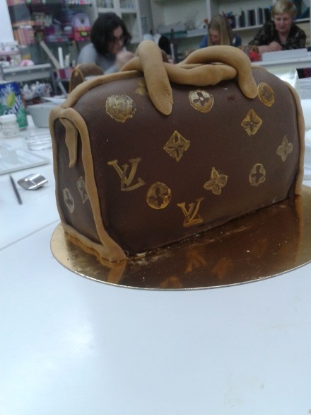 Pues empecemos por el bolso. Como siempre hice el curso en el taller de tartas y la verdad que la idea de hacer una tarta con forma de bolso en un poco chorra pero una tiene que aprender distintas cosas por muy chorras que sean porque no sabes qué te puede aporta a largo plazo…bueno, os enseño las fotos y ya me decis qué os parece: