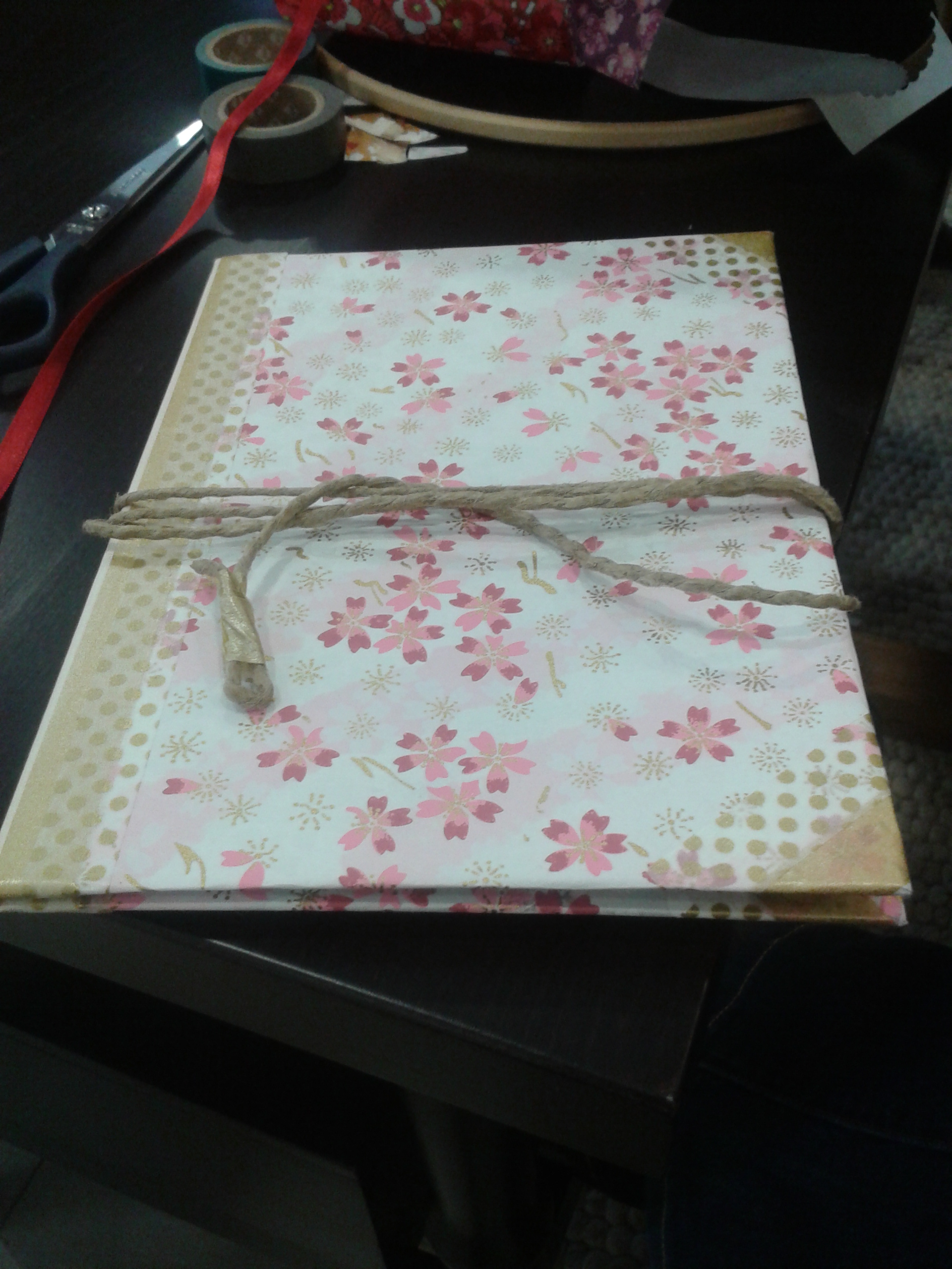 Esto es una carpeta que hice partiendo de 2 trozos de cartón: con papel japonés, washi tape, cuerda y poco más hice esta carpeta…¿a qué es bonita?