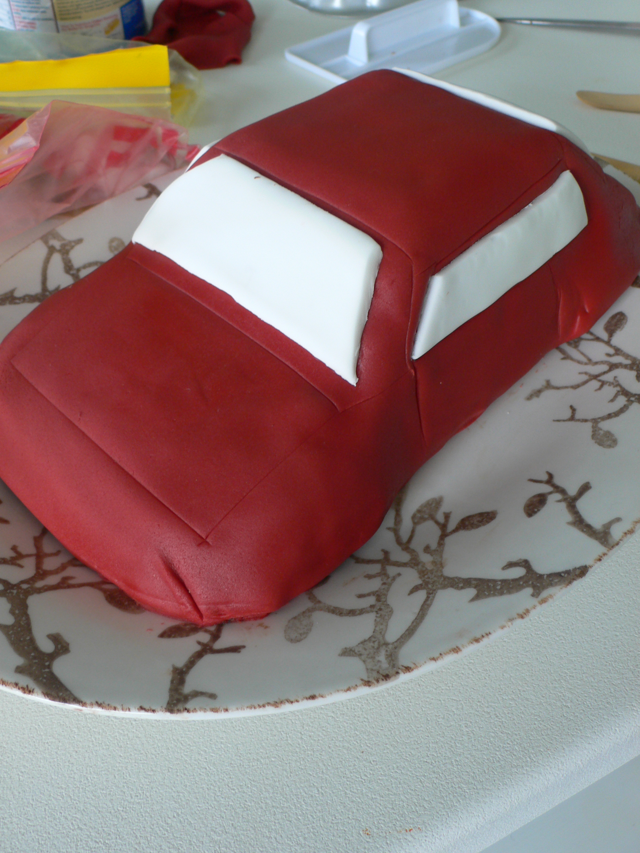 Cómo veréis una mañana de lo más productiva! Mi súper hermana, que como ya os comenté es la persona con el mejor gusto del mundo y además cocinera excelente (está haciendo el curso de Cordon Bleu de repostería..así que con eso os lo digo todo!!) me hizo una tarta buenísima de 3 chocolates que no tenía forma de coche..