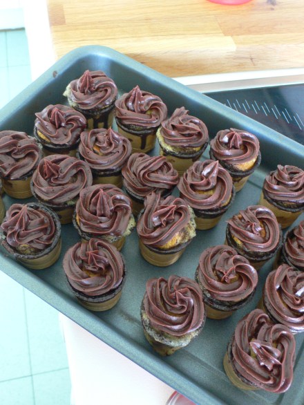 Sacaré la receta porque me ha sido muy popular pero básicamente es poner la masa de cualquier receta de muffins los cucuruchos y al horno!