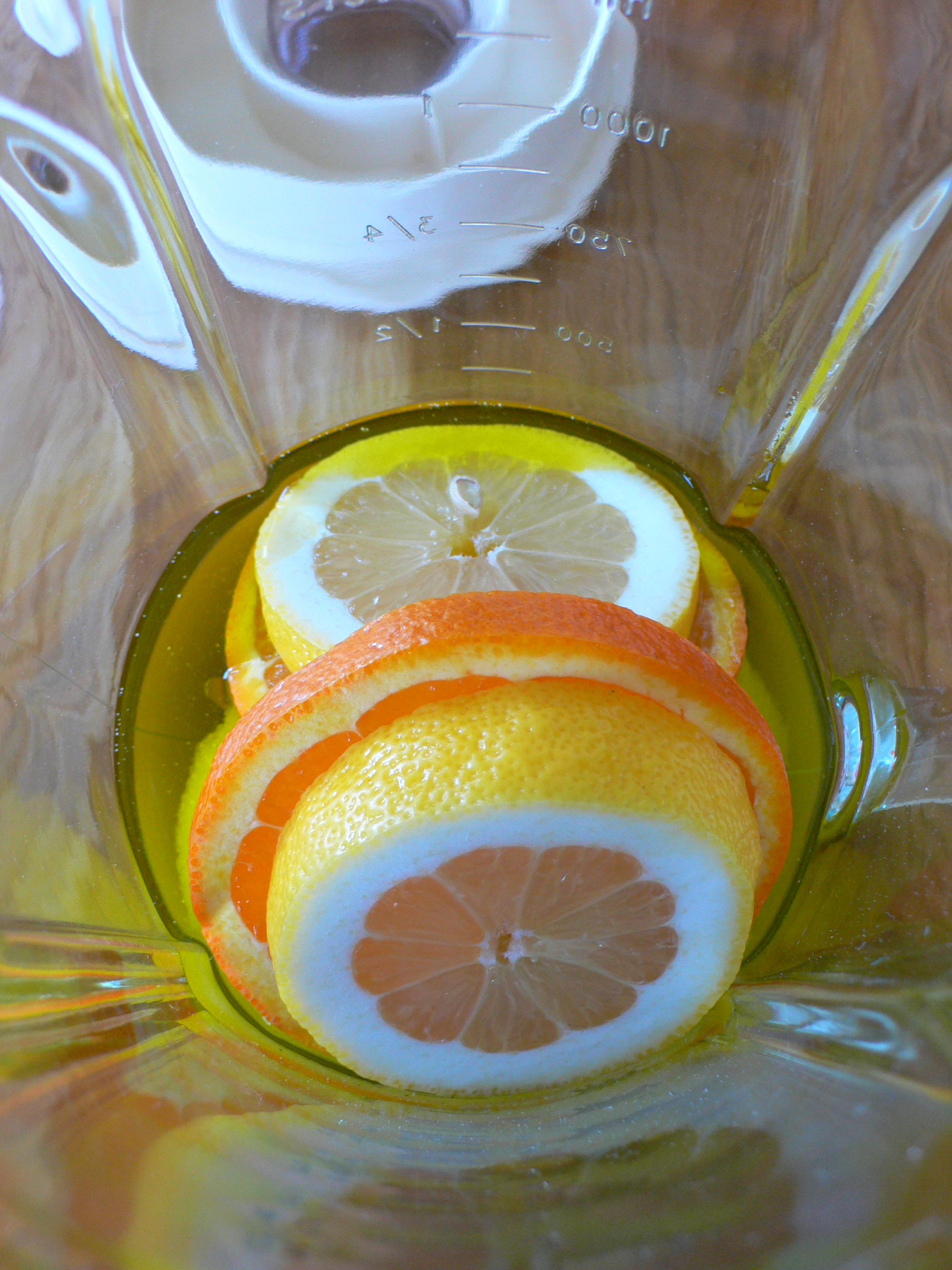 • Media taza de aceite de oliva (aunque la próxima vez voy a usar de almendras ó girasol pero no porque el de oliva no sea estupendo que lo es, sino porque le roba un poco el olor al limón y a la naranja que me encantan como huelen)