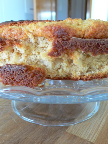p.d: aquí os enseño cómo se ha quedado de un pastel que hice ayer..para que veáis que no siempre las cosas salen bien, sobre todo si tenéis la porquería de horno que tengo yo y no engrasáis bien el molde del bizcocho. No es muy presentable que digamos porque se ha quedado sin bordes, pero sigue estando buenísimo…lo importante es no pasa nada si las cosas no salen como a uno quieren….siempre se puede intentar hacerlo otro vez 🙂