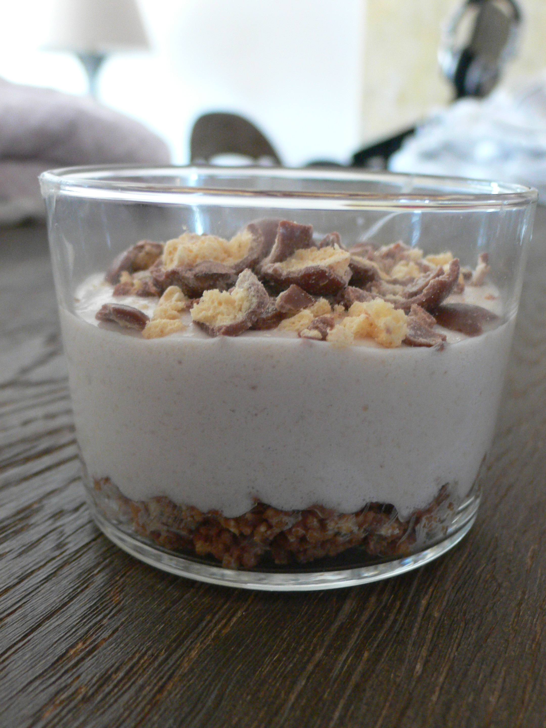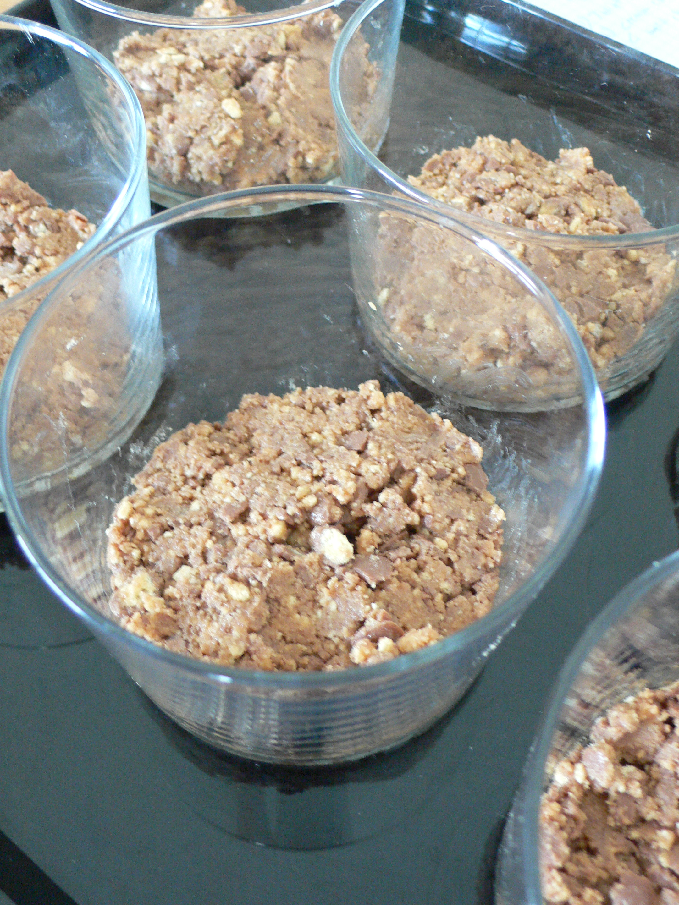 Ahora vertemos la mousse de plátano sobre el crujiente de Maltesers: