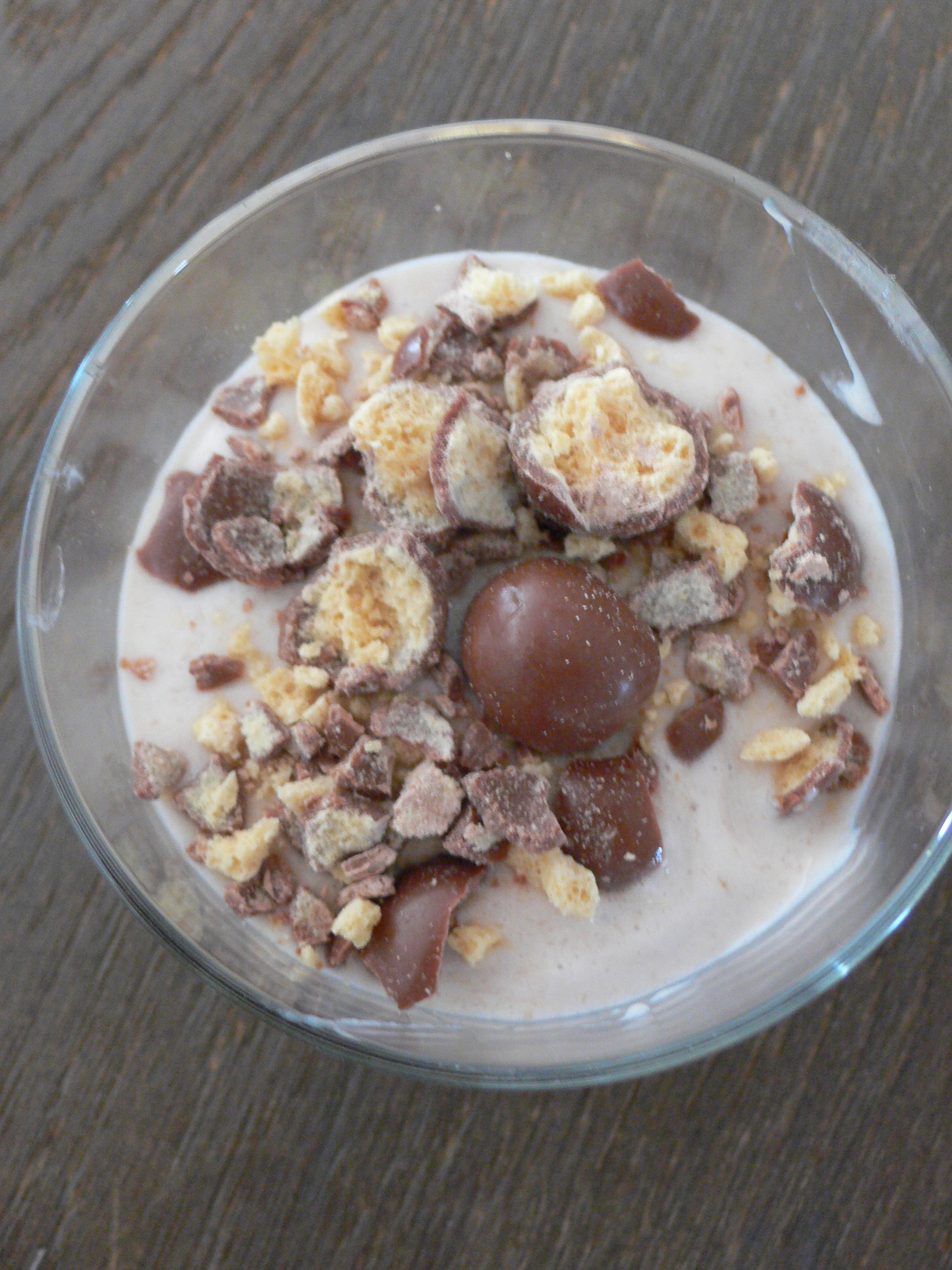 Antes de servirlos, lo decoráis con más Maltesers y eso al gusto de cada uno: o enteros, o machacados o ambos: