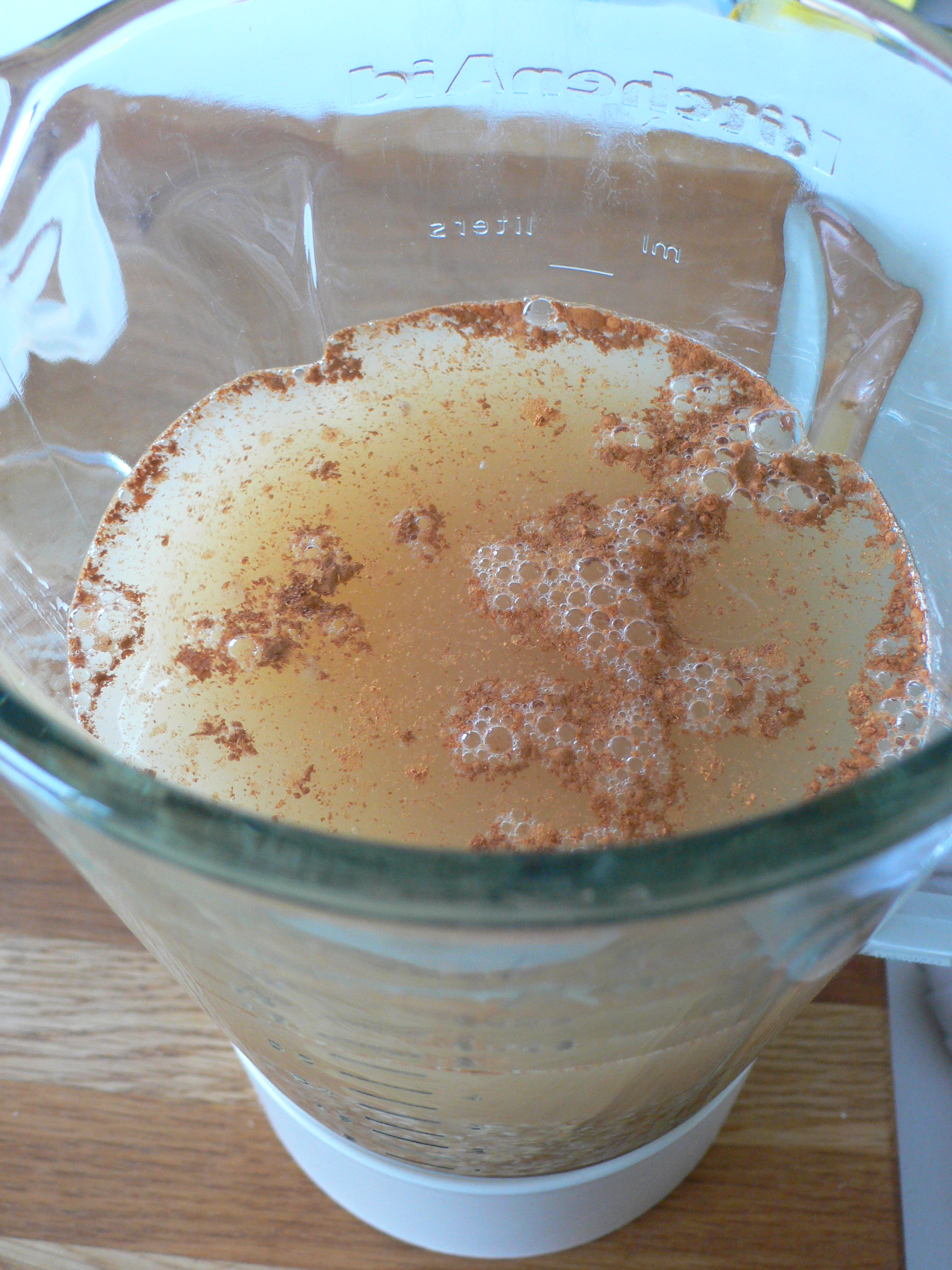 - 1/4 de cucharada de las de té de canela y lo mismo de sal (aunque yo la próxima vez no le voy añadir la sal)