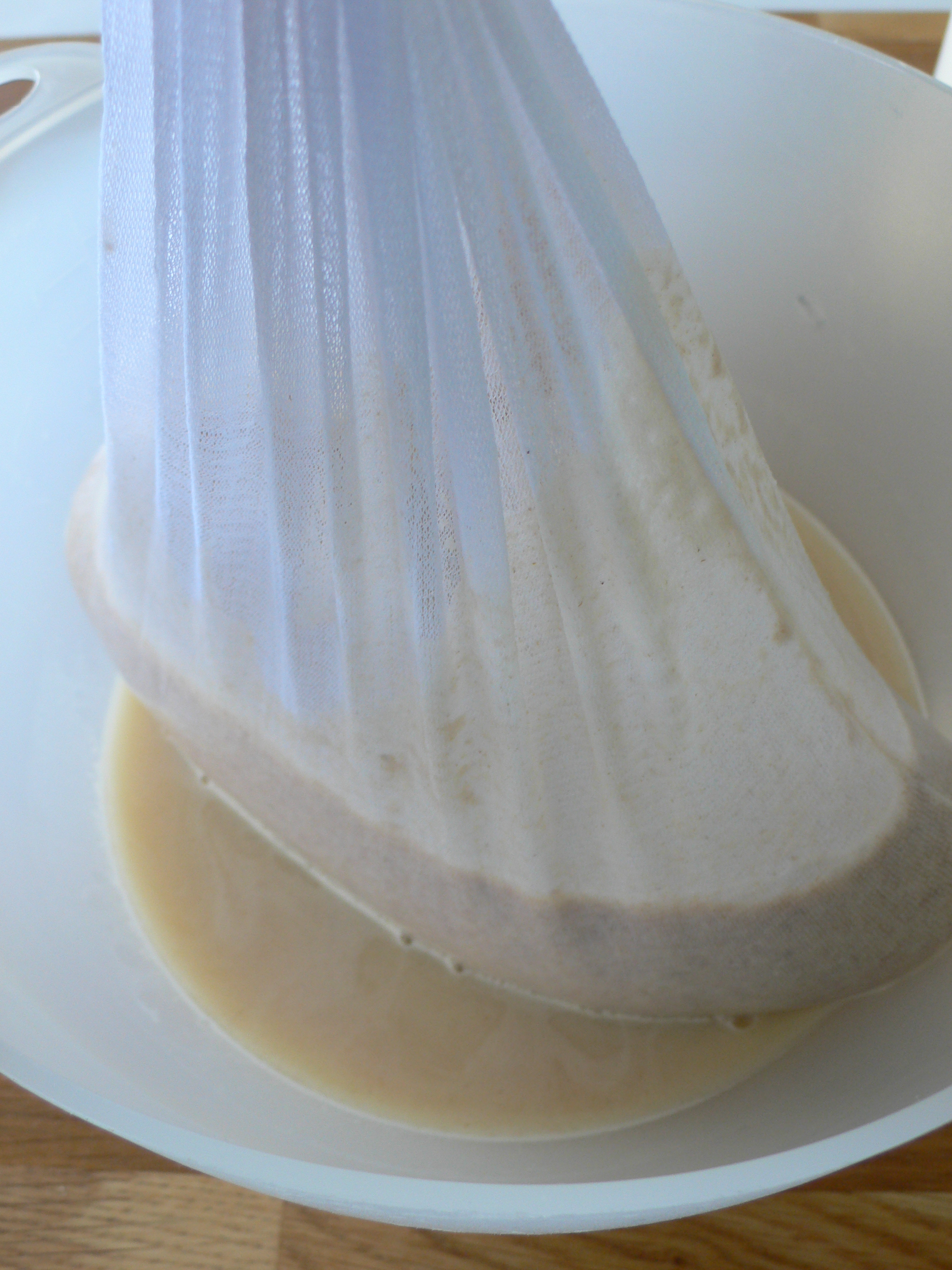 Una cosa, la única dificultad que tiene…(y realmente no es dificultad) es que necesitáis una tela muy finita o muselina o un colador súper súper fino para colar la leche una vez hecha.