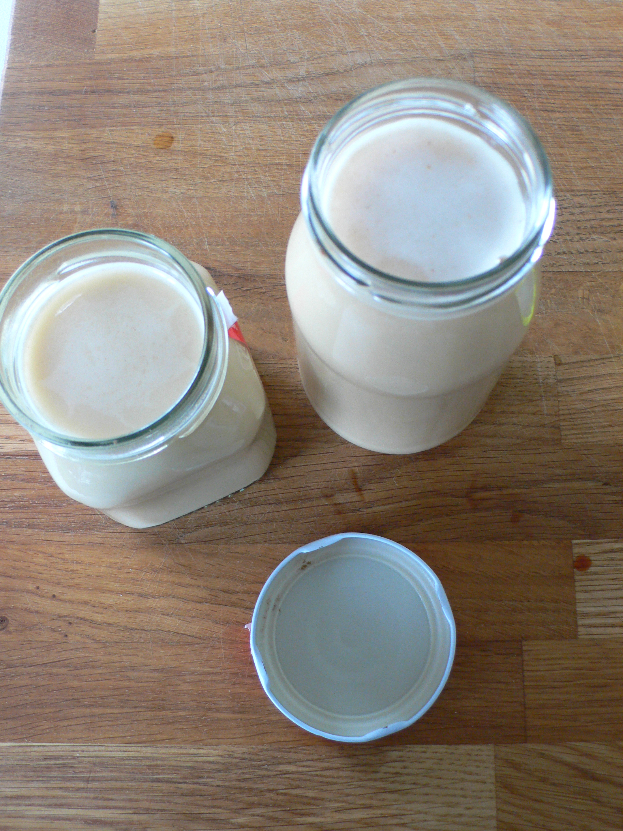 Y ya está…ahora sólo falta verter la leche de avena en botes y a la nevera…o a bebérsela directamente. Da para 2 botes de 450 gr, casi 1 litro. Que no está mal si tienes en cuanta que un litro en el herbolario de cuesta 2 euros algo y esto ha salido por menos de 50 céntimos…