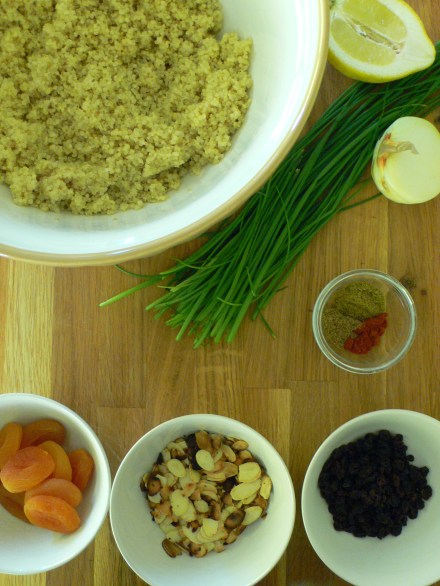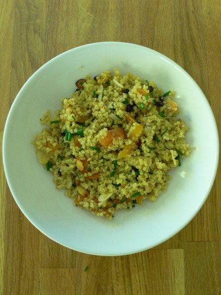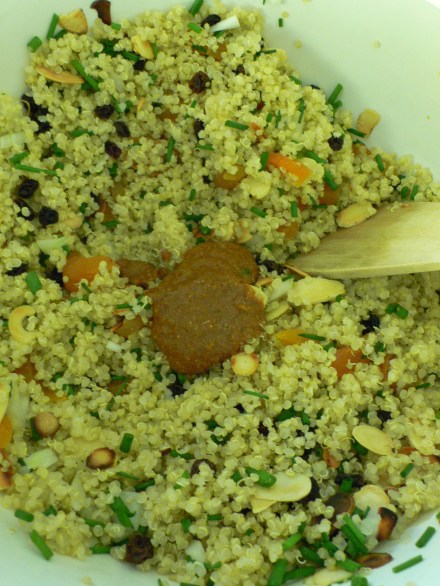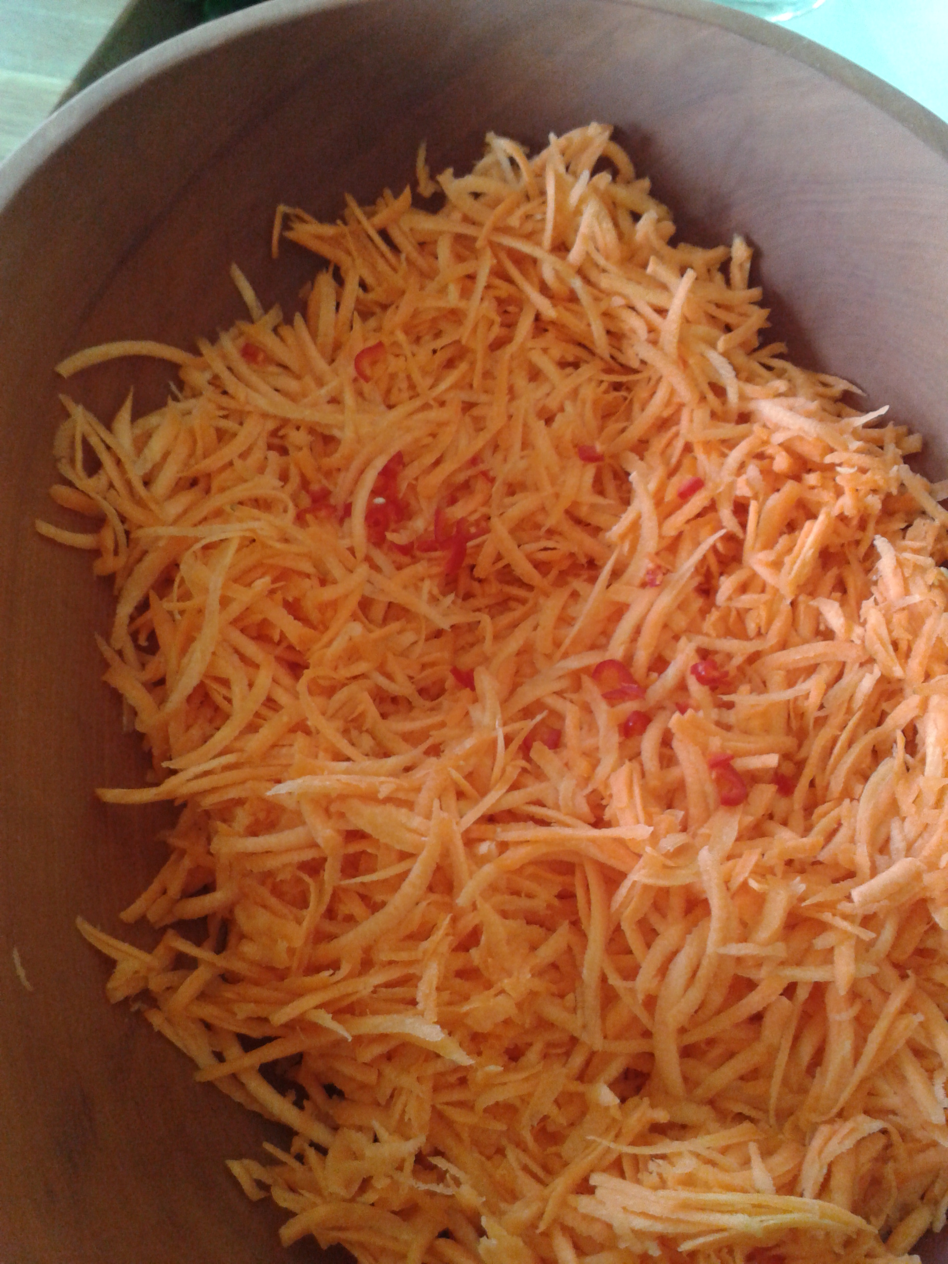 La primera es una de Jamie Oliver de su libro 30 minutes meal con zanahoria, jengibre rallado, chili, cilantro y almendras tostadas: