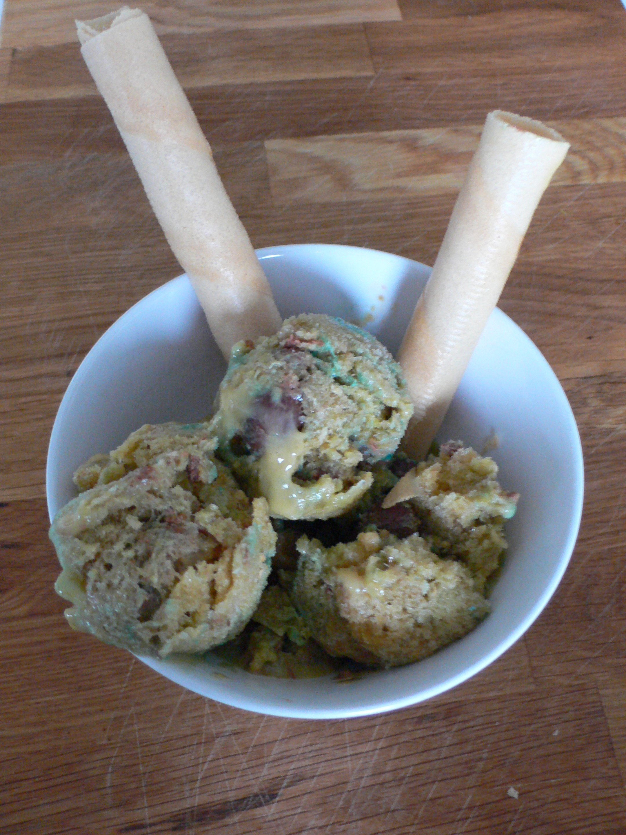 Aviso a navegantes: no sé por que pero los M&M´s azules destiñen, por lo que cuando lo mezcléis todo bien hacerlo con cuidado porque la combinación de azul con marrón no es muy recomendable. Pero bueno es solo por efecto visual porque de sabor está genial! Si te gusta el helado de café claro 😉