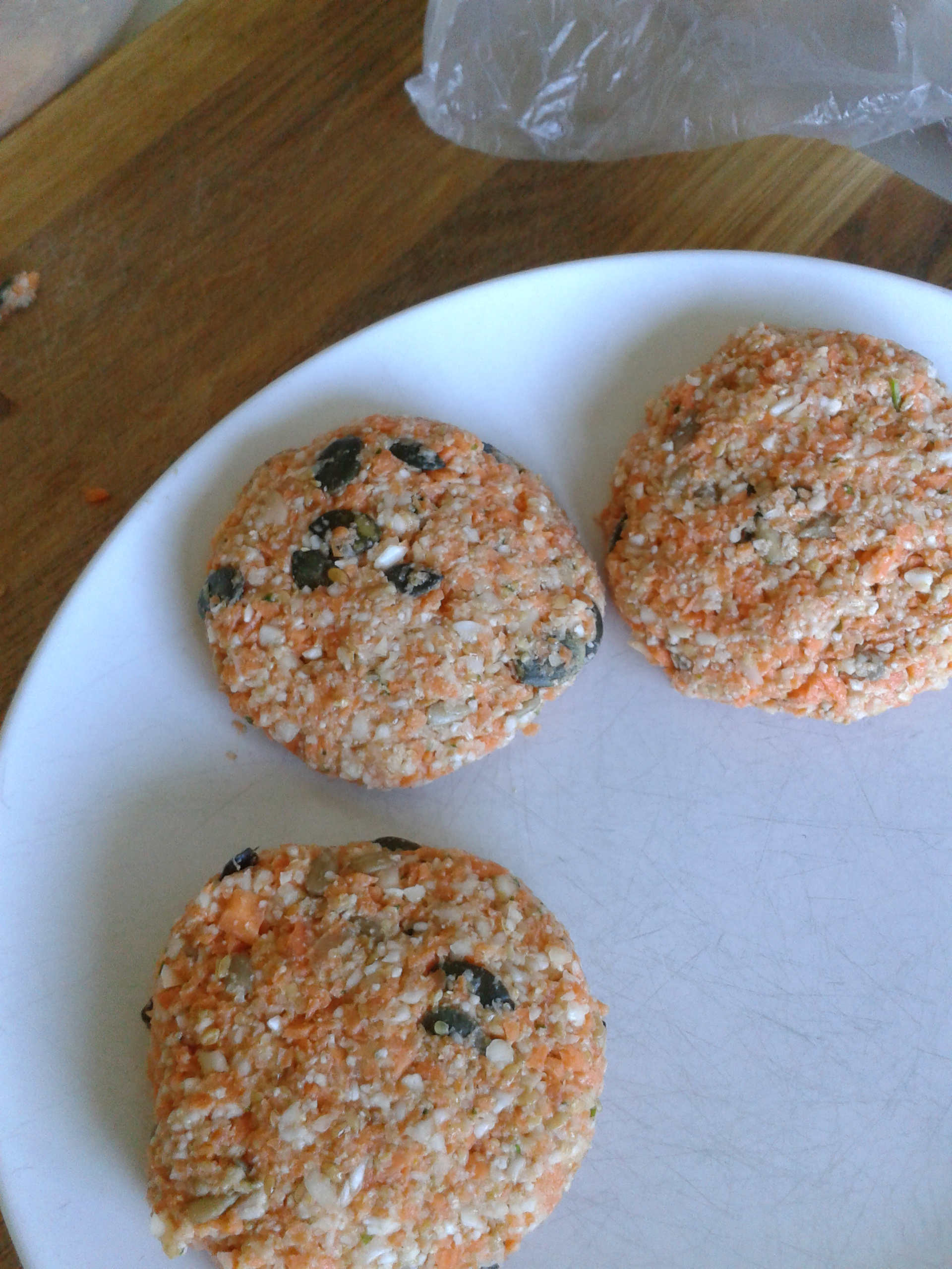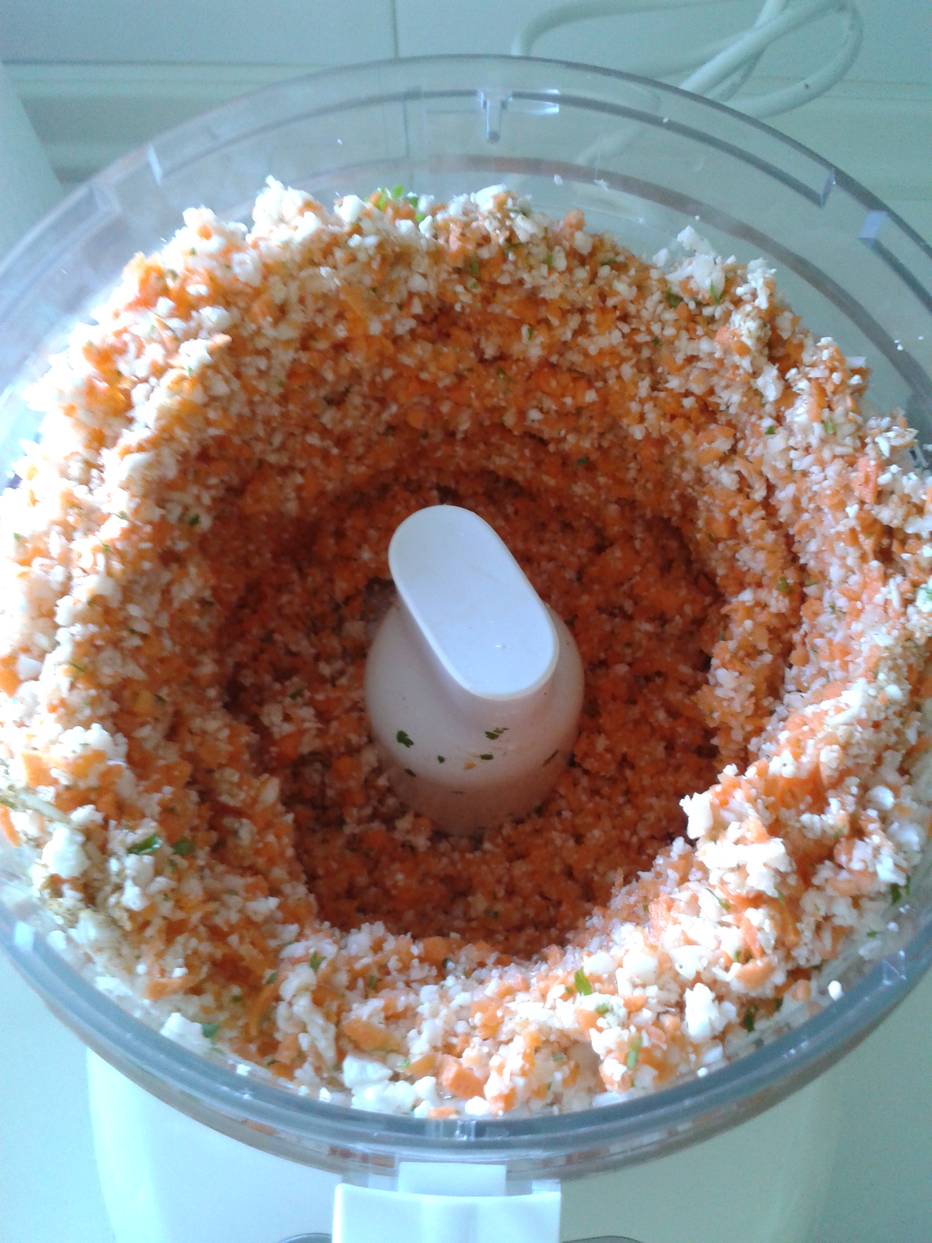 Están hechas con coliflor y zanahoria y antes de que empecéis a decir «argh, que asco» os pido por favor que sigáis leyendo porque están buenísimas! Hasta el punto que Mr Grumpster ha dicho que nunca pensó que él diría que comer algo con coliflor estaría delicioso.